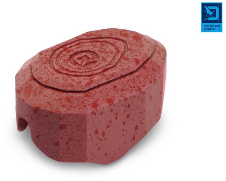 A jobb kezelhetõség érdekében a formának két bevágása van az oldalán, így könnyebb eltávolítani a feeder kosarat belõle. Erre a célra egy alsó rész is található barázdákkal, ami úgy néz ki, mint egy ujjlenyomat, középen Delphin logóval. Ha ezt megnyomjuk, a kosár könnyen kifordul a töltõszerszámból.